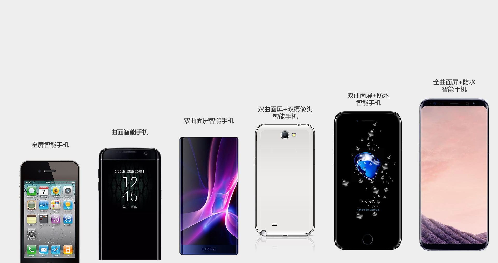 從低到高來說,例如:華為榮耀3,防水等級IP57,主要是手機殼與屏幕縫隙,耳機/USB插孔防水和電池的保護; 蘋果iphone 7s:防水等級IP67,外部Type-c接口防水,內(nèi)部sim卡托,和揚聲器/麥克風/聽筒防水; 三星S7:防水等級能達最高等級IP68,主要是耳機/USB插孔防水,揚聲器/麥克風/聽筒,實體按鍵縫隙和sim卡托防水。