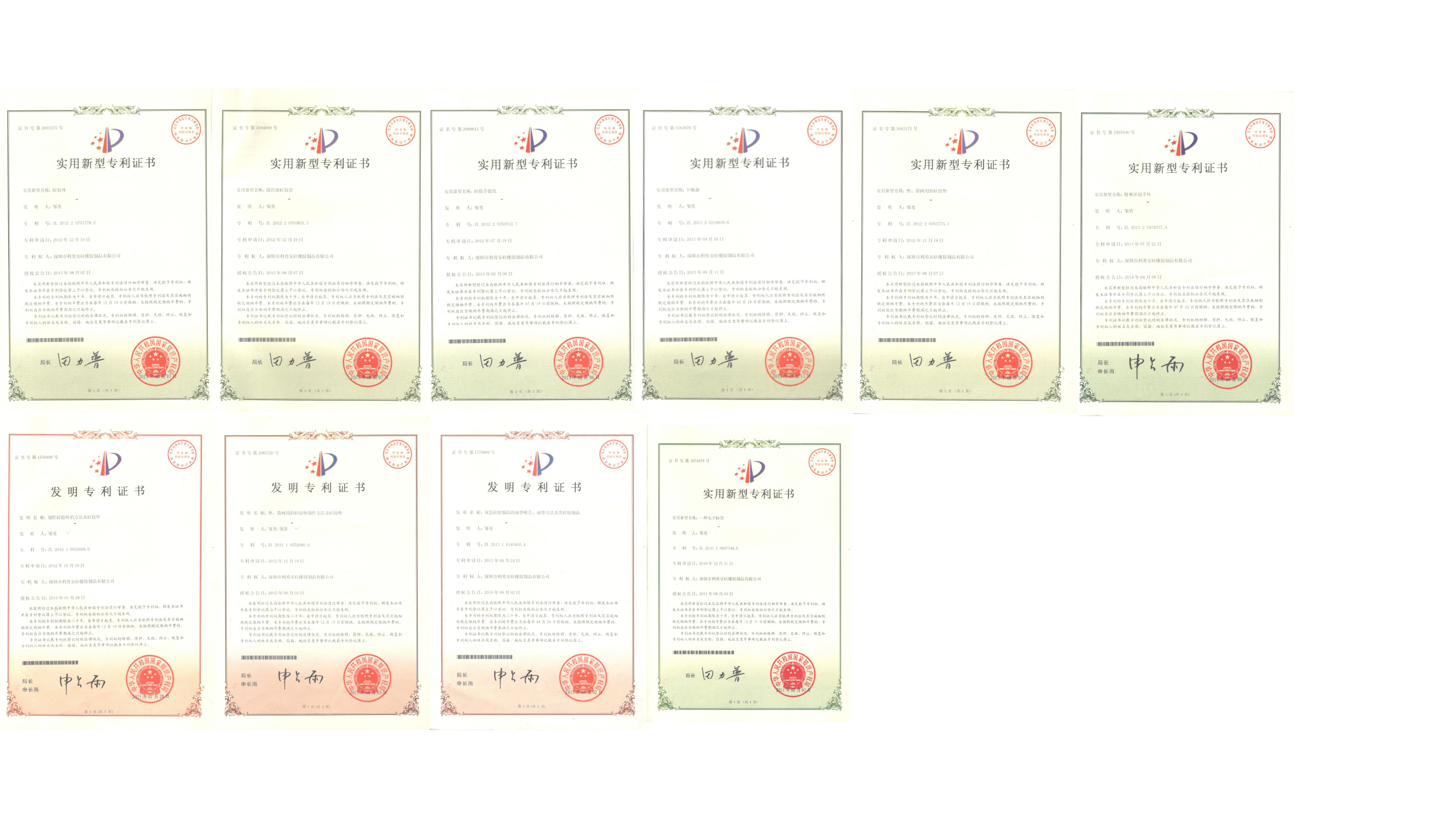 自 2001 年創(chuàng)立伊始,利勇安深耕硅膠制品領(lǐng)域,以創(chuàng)新驅(qū)動(dòng)發(fā)展,持續(xù)進(jìn)行技術(shù)研發(fā)與工藝革新,構(gòu)建起堅(jiān)實(shí)的知識(shí)產(chǎn)權(quán)壁壘。截至目前,公司已成功斬獲 10 余項(xiàng)國家專利證書,涵蓋產(chǎn)品設(shè)計(jì)、生產(chǎn)工藝及模具制造等多個(gè)維度。