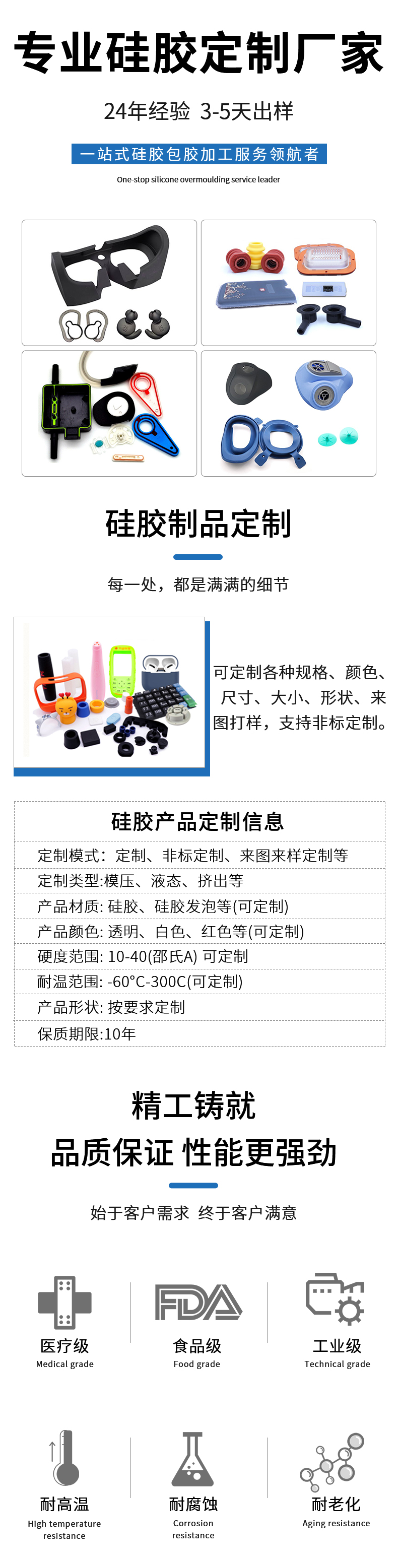 利勇安硅膠始終堅(jiān)持誠(chéng)信務(wù)實(shí)的工作態(tài)度,專注技術(shù)創(chuàng)新與品質(zhì)提升致力于打造高質(zhì)量硅膠產(chǎn)品,持續(xù)深耕汽車、智能穿戴、母嬰用品、3C電子、醫(yī)療行業(yè)與電子霧化等多個(gè)領(lǐng)域。專注液態(tài)硅膠制品精密技術(shù)研發(fā)24年。